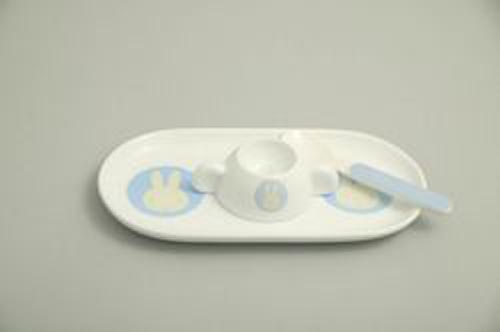 Miffy porcelain egg cup, snack tray, and spoon in either pink or blue.