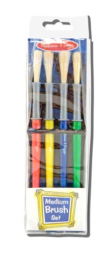 A great set of medium tipped paint brushes for painting outlines or filling in medium-sized areas. The set includes four easy to grasp, natural bristle brushes with easy-clean handles in a phthalate-free storage pouch. 203 mm x 61 mm x 25 mm