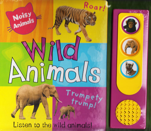 Listen to the voice of wild animals and learn about them. It is ideal for children to learn their first words in English in easy and fun, all images of animals. It is a sound book that children will learn the sound of the elephant, the Tiger and the chimpanzee. This book is recommended for children over 3 years. Batteries included.